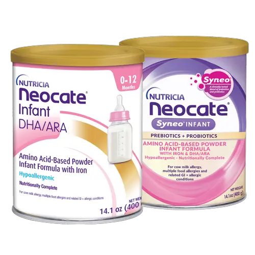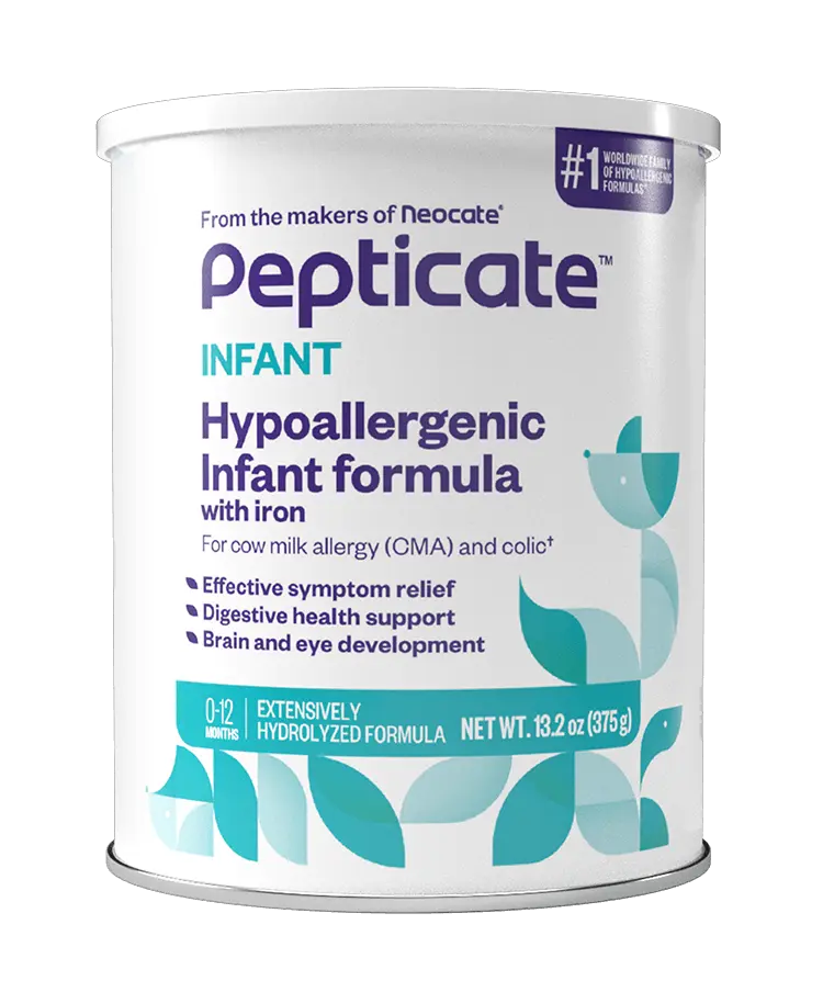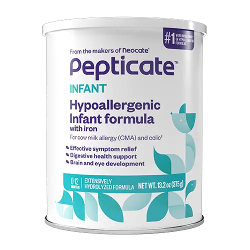 The best way to manage a cow milk allergy and avoid the painful symptoms it can cause is to eliminate intact cow milk proteins and to have the right nutrition to foster healthy growth and development for infants and children. And that’s where Pepticate and Neocate come in.